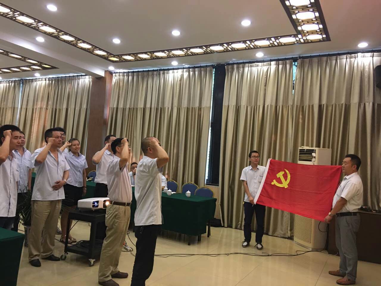 公司召开2017年半年总结及党员组织活动会发表时间:2017-07-26 2017年7月22日,公司在广汉三星堆瞿上园酒店召开2017年半年总结及党员组织活动会,公司中层以上干部及党支部全体党员共30人参加会议。上午9时许,同佳党支部书记郭先静带领公司14名党员面对党旗,庄严宣誓,重温入党誓言,随后,郭书记又对两新党组织概念、省十一次党代会精神等进行了讲解、传达,同佳机械刘安全总经理,同佳环保宋联吉总经理对相关工作进行了安排。最后,公司董事长潘强进行了《上半年工作总结及下半年工作安排》。下午,与会人员在三星堆瞿上园开展了各种文体活动,在欢声笑语中过了一次难忘的组织活动。