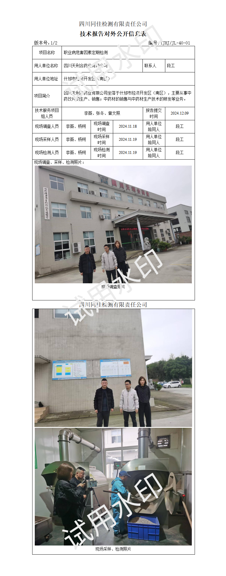 四川天利合药业有限公司(定期检测)
